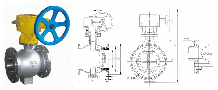 不銹鋼偏心半球閥外形結(jié)構(gòu)圖: