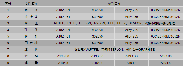 F61、S32550、Alloy255雙相不銹鋼球閥零件材料: