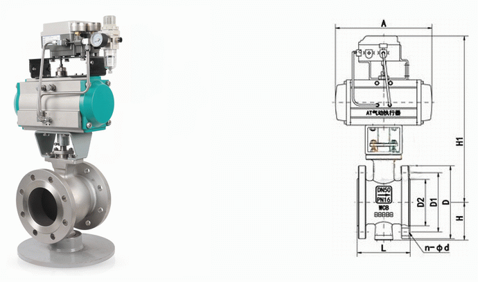 氣動(dòng)V型調(diào)節(jié)球閥由活塞式雙作用或單作用(彈簧復(fù)位式)氣動(dòng)執(zhí)行器和法蘭式V型球閥組成,它與電氣閥門(mén)定位器配套使用可實(shí)現(xiàn)比例調(diào)節(jié),與電磁閥及控制箱配套使用可實(shí)現(xiàn)二位切斷控制,該氣動(dòng)V型球閥以壓縮空氣為動(dòng)力,通過(guò)活塞齒條、齒輪的機(jī)械傳動(dòng)閥桿,以角行程輸出的扭矩轉(zhuǎn)動(dòng)球體0~90°從而完成啟閉或調(diào)節(jié)動(dòng)作,通過(guò)配套電氣閥門(mén)定位器輸入4-20mA電流信號(hào)改變閥芯的旋轉(zhuǎn)角度(0-90°任意角度),實(shí)現(xiàn)調(diào)節(jié)控制流量等參數(shù)。氣動(dòng)V型調(diào)節(jié)球閥閥芯設(shè)計(jì)成帶有特殊形狀的V型缺口,具有精確的流量特性和控制功能,主要適用于氣體、液體、固態(tài)顆粒狀等介質(zhì)的控制,尤其是含有纖維性或有微小固體顆粒的懸濁液及固態(tài)顆粒狀的工況場(chǎng)合的自動(dòng)化控制系統(tǒng)。