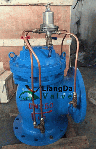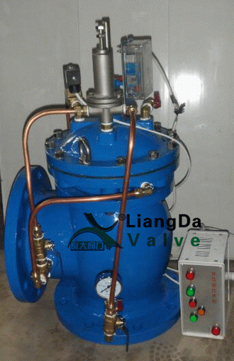 水擊預(yù)防閥由主閥、高壓水力導(dǎo)閥、電磁導(dǎo)閥、低壓壓力開關(guān)、導(dǎo)管、電子控制箱等零部件組成。具有水力自動(dòng)控制、電子自動(dòng)控制、高壓無(wú)條件開啟泄水、低壓提前開啟、斷電開啟、斷電并伴隨低壓開啟泄除水錘及預(yù)防水錘的功能。主閥能快開緩閉,具有防止自身關(guān)閥水錘的功能。水擊預(yù)防閥用于水泵出口主輸水管道上,靠近水擊發(fā)生源如止回閥等,用T型三通外接,能提前開啟預(yù)防水錘并無(wú)條件泄除高壓水錘,是泵站安全的重要預(yù)防及保護(hù)設(shè)備,能有效地提高系統(tǒng)安全可靠性。