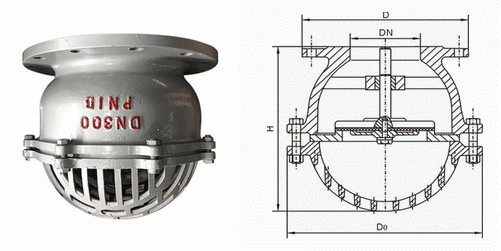 升降式底閥是一種節(jié)約能源的閥,一般安裝在水泵水下吸管的底端限制水泵管內(nèi)液體返回水源,起著只進不出的功能。閥蓋上有很多個進水口和加強筋起到了不易堵塞,主要應(yīng)用在抽水的管路上水道和支承的作用。安裝在水泵底部防止水的倒流,連接方式有法蘭連接和螺紋連接。