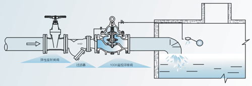 溝槽式浮球閥主要安裝于水池或水塔的進(jìn)口處,當(dāng)水位達(dá)到設(shè)定高度時(shí),主閥由浮球?qū)чy控制關(guān)閉進(jìn)水口停止供水,當(dāng)水位下降后,主閥由浮球?qū)чy開關(guān)控制打開進(jìn)水口向水池或水塔供水,實(shí)現(xiàn)自動(dòng)補(bǔ)水。該閥液位控制精度高,不受水壓干擾,可任意安裝位置,密封性能可靠,安裝、維護(hù)、調(diào)試、檢查方便、使用壽命長(浮球?qū)чy可與主閥分離安裝)。