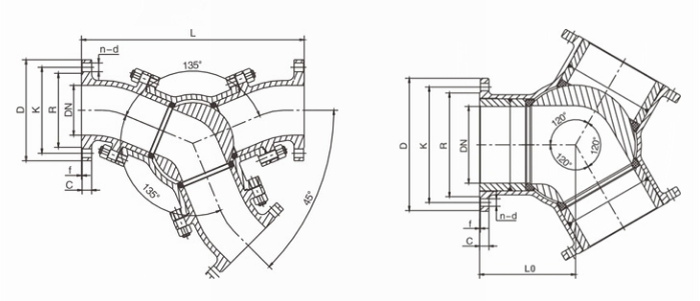 Y型三通粉體閥外形結(jié)構(gòu)圖: