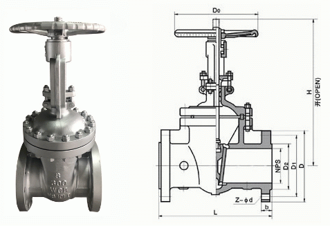手動美標閘閥外形結構圖: