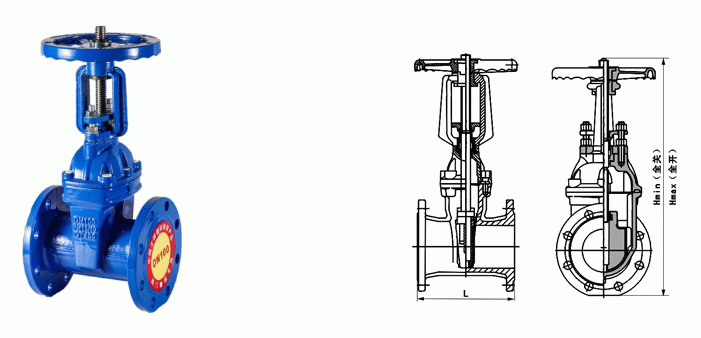 明桿軟密封閘閥外形結(jié)構(gòu)圖: