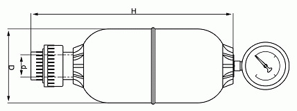 型號 容積(L) H(mm) d(mm) D(mm) 口徑DN 額定壓力Mpa