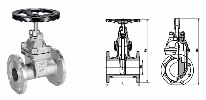 不銹鋼暗桿軟密封閘閥外形結(jié)構(gòu)圖: