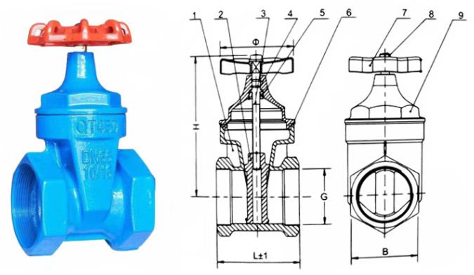 暗桿絲扣閘閥外形結(jié)構(gòu)圖: