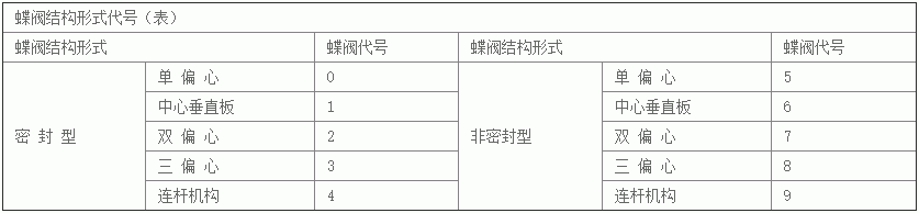 ①蝶閥結(jié)構(gòu)形式 (代號(hào)):