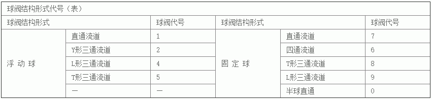 ③球閥結(jié)構(gòu)形式(代號(hào)):