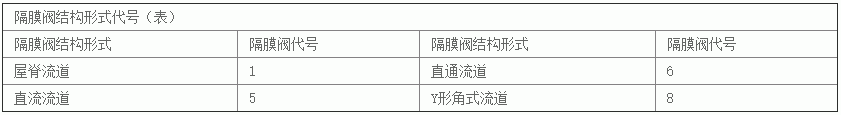 ⑥隔膜閥結(jié)構(gòu)形式代號(hào):