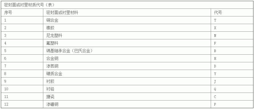 五單元、閥門密封材質(zhì)(代號(hào)):